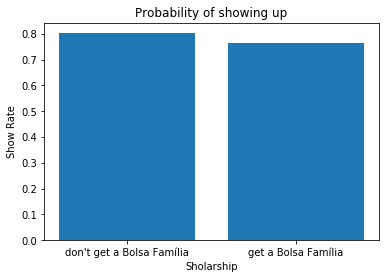 df_scholarship = df.groupby('Scholarship').mean()['Show']
