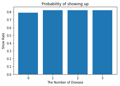질병의 수가 많을 수록 No show 확률이 적습니다.
